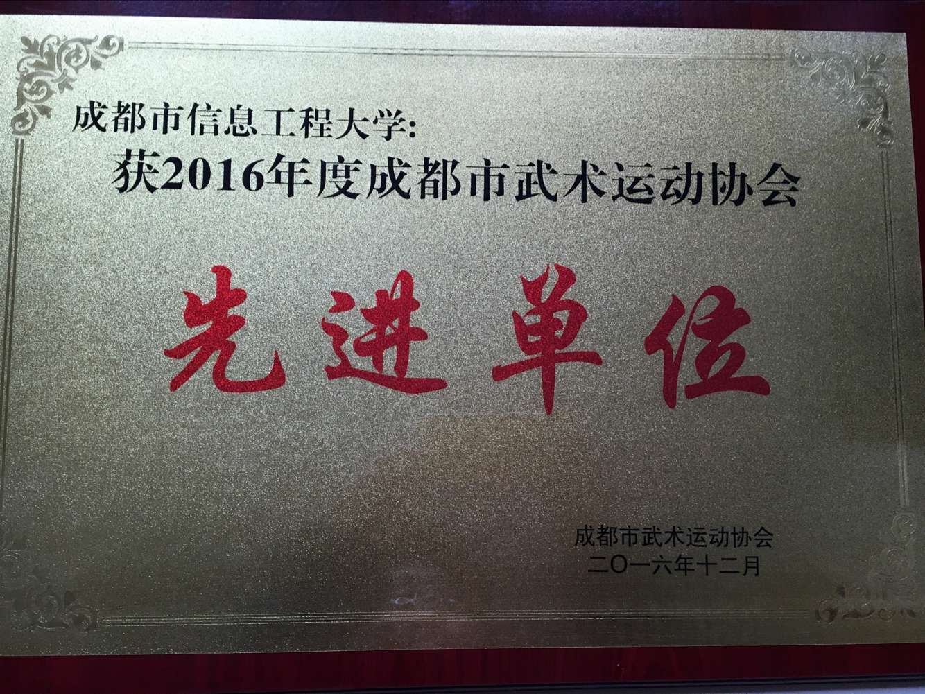 我校获得2016年度“成都市武术运动学会先进单位”称号