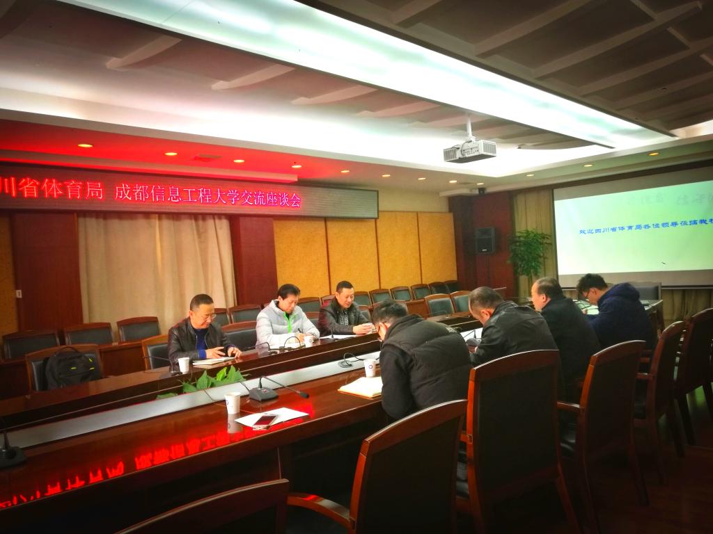 3月15日下午,四川省体育局副巡视员高亚翔、青少年体育处副处长康翔、竞技体育副处长邹魁一行三人来我校进行工作交流。学校副校长何建新、体育部副主任樊翔、体育部党政办、教务办负责人与高亚翔一行进行了座谈。