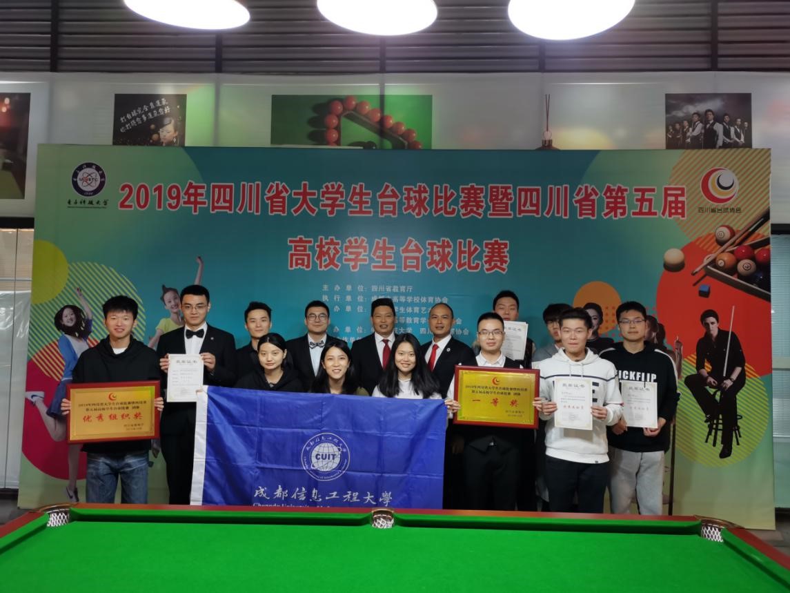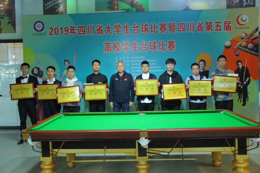 2019年10月25-27日由四川省教育厅主办、电子科技大学承办的四川省大学生台球比赛暨四川省第五届高校学生台球比赛,在电子科技大学台球训练馆举行。我校由樊翔担任领队、黄强担任教练带领的队伍报名参加了比赛。