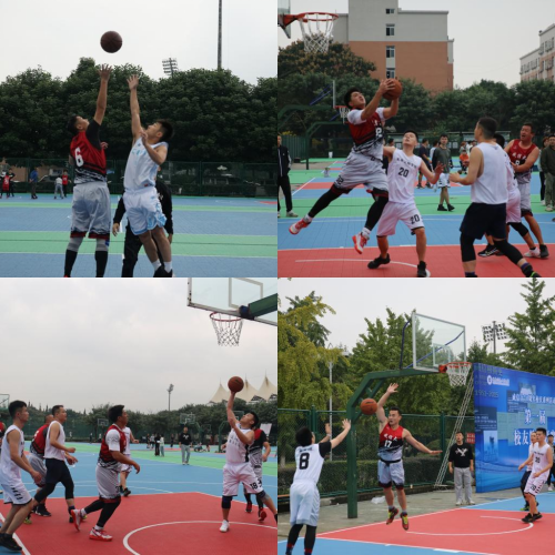 17日上午10:00,篮球联赛“鸣锣开战”,上午进行两场半决赛的角逐,分别是教职工队对阵商学院,光电工程学院对阵通信学院。参赛队员在赛场上的飒爽英姿令观众们赞叹不已。