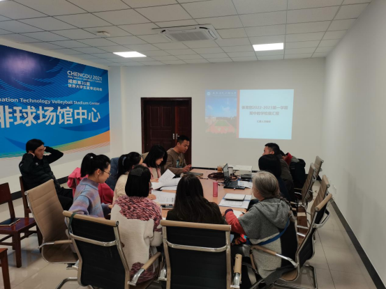 体育部主任程艺就今年本科教学评估和期中教学检查等事宜做了汇报,教学副主任刘俊彤就本学期教学改革及教学运行情况等向检查组做了具体汇报,随后检查组对各教学环节资料及评估备查资料进行详尽查验,记录。