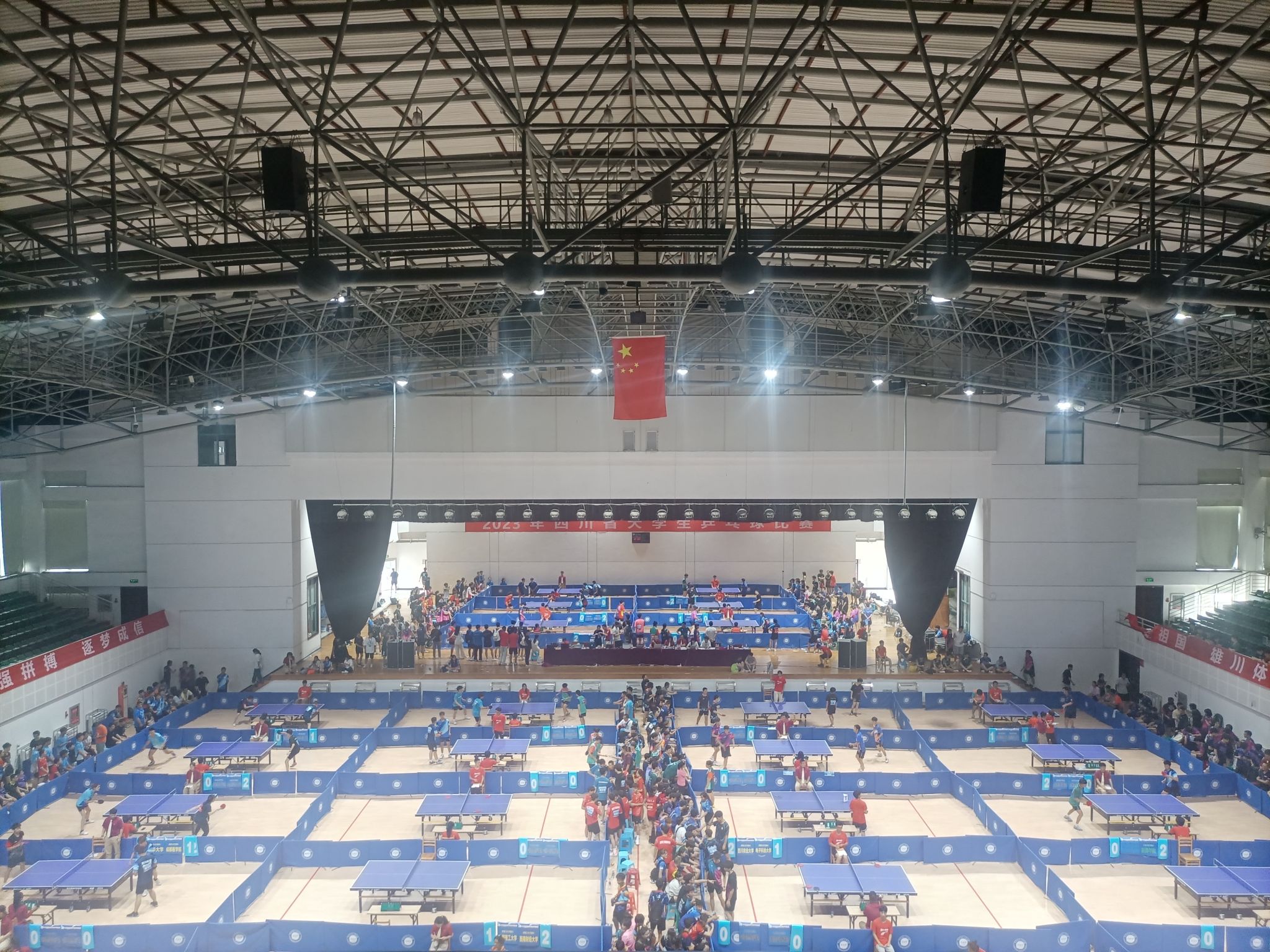 2023年四川省乒乓球比赛于6月9日在我校航空港校区开幕,比赛由四川省教育厅主办、四川大学生体育协会执行、我校承办,是四川省高校乒乓球最高水平和历史最大规模的赛事。本届比赛吸引了来自全省77个高校的102支代表队参与,1000余名运动员、教练员齐聚我校航空港校区,参加高校组、专业组、高水平组、高职高专组4个组别的7个项目。
