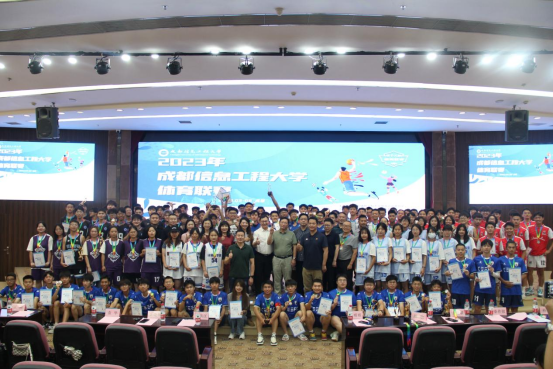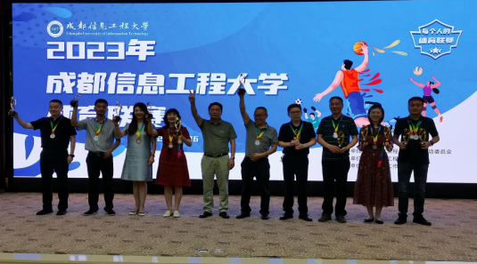 本次学生体育联赛由体育部、学工部、校团委发起,比赛包含了女子篮球、男子篮球、混合排球、足球四个比赛项目,在为期一个半月时间里共计完成近百场激烈角逐,参赛人数达1000余人。最终软件工程学院、大气科学学院、软件工程学院 、电子工程学院四个队分别获得(男、女)篮球、混合排球、足球冠军!党委学生工作部龚晓林部长、大气科学学院刘琰琰书记、软件工程学院童强副书记、电子工程学院杨勇副书记分别为获奖运动队颁奖并合影。马洪江为获得体育联赛前三名的学院书记颁发奖杯并合影。