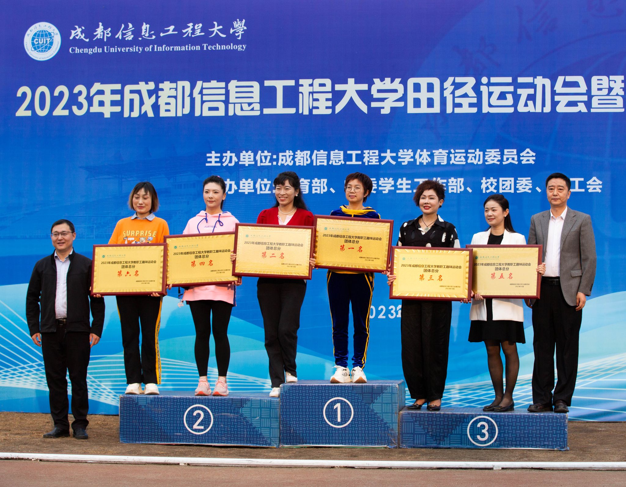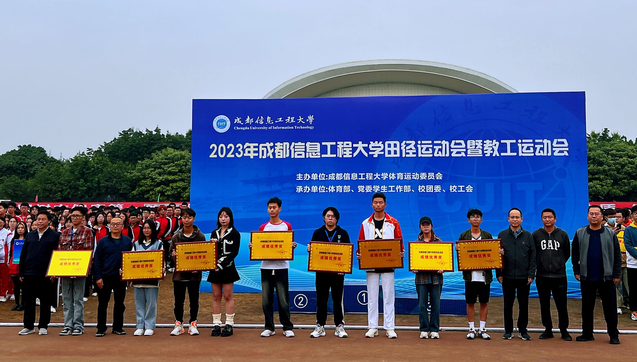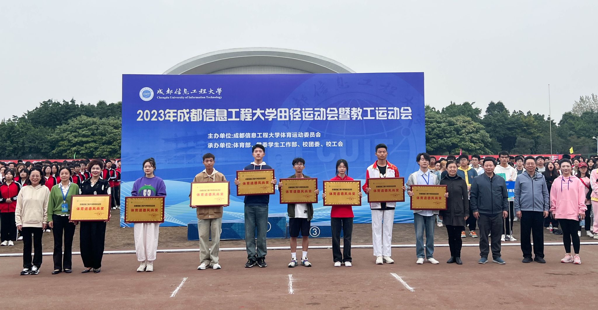 资源环境学院、应用数学学院、区块链产业学院、马克思主义学院、外国语学院、网络空间安全学院、统计学院、大气科学学院荣获体育道德风尚奖。
