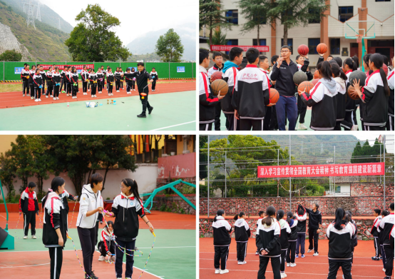 2.11月7日,学校党委宣传部、体育部赴泸定第二中学开展新时代文明实践中心结对共建工作,代表学校捐赠了篮球、空竹、表演服装等物资。廖述兵、耿喆,邢丽、黄学丰老师等人为同学们带去了空竹、武术、跳绳及篮球等“趣味体育课”。课程结束后,体育部教学团队与泸定县第二中学体育教学组开展教师职业技能座谈交流会,双方就体育教学经验、职业技能发展、职业规划等话题展开深入讨论。