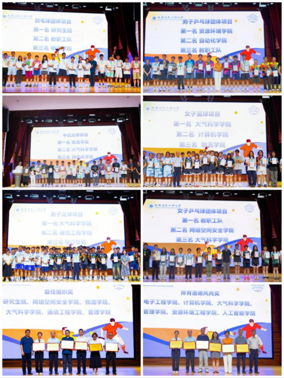 在颁奖环节,各项目裁判长依次揭晓各项目的前八名获奖名单,同时公布优秀裁判员、最佳组织奖和道德风尚奖归属。陈权亮副校长、各学院书记及职能部门领导依次登台,为获奖团队与个人颁发荣誉证书,现场掌声雷动,气氛达到高潮。