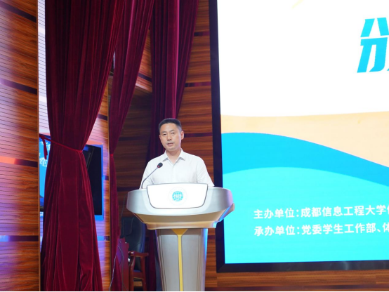 陈权亮副校长发表闭幕致辞。他首先对为期两个月的赛事筹备与承办工作给予高度评价,向全体裁判员、工作人员及各职能部门的辛勤付出表示诚挚的感谢。他指出,本届体育联赛的成功举办,是“团结拼搏、追求卓越”成信精神的生动体现,更是学校推进体教融合的生动实践。他强调,体育不仅是强健体魄的方式,更是塑造健全人格、培育高尚品德的重要载体。未来,学校将持续深化体教融合,构建“课程教学 + 竞技训练 + 体质监测 + 文化浸润 + 社会服务”五位一体的育人体系,全方位助力学生成长成才。