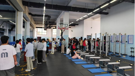 自第六周起,室内测试项目正式开启,包括肺活量、坐位体前屈、身高体重等项目。学校设置了多个测试站点,并安排专人进行引导,通过“线上预约 + 现场分流”的方式,减少学生的等待时间,预计11月中旬完成全部21000名学生的室内测试工作。