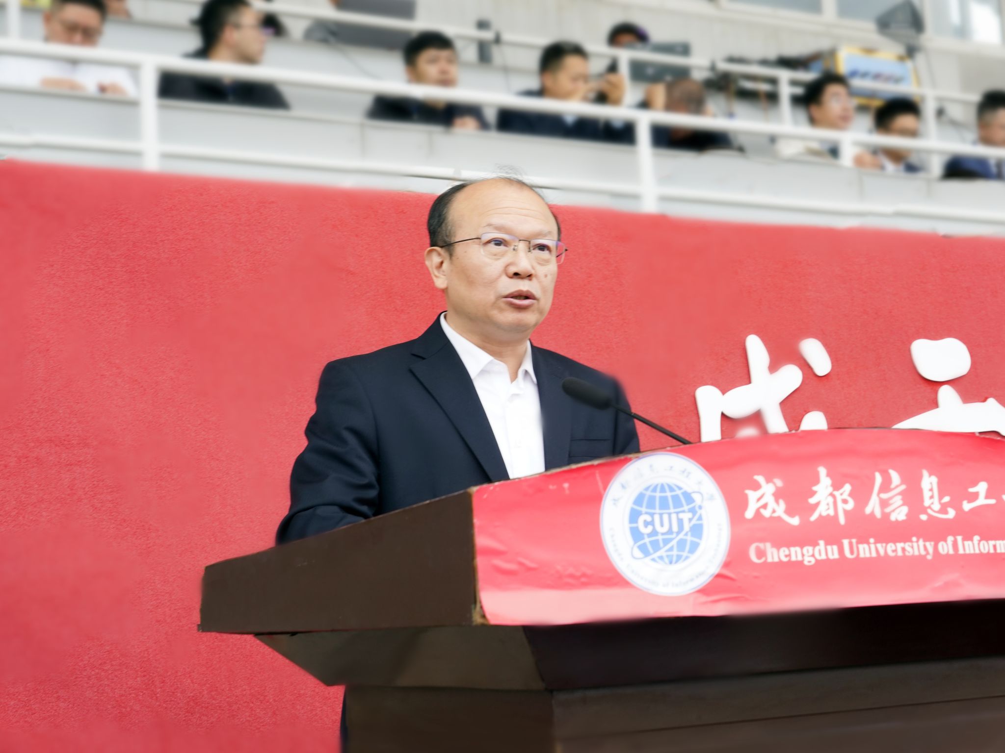 何建新代表学校对本届运动会的召开表示热烈祝贺,向为筹备运动会付出辛勤努力的全体师生员工表示衷心感谢。何建新指出,“体育强则中国强,国运兴则体育兴。”体育不仅关乎个人健康,更承载着国家强盛、民族振兴的梦想。开展校园体育运动,是增强师生体质、丰富校园文化内涵的重要举措。他强调,体育精神既闪耀在赛场之上,更应融入我们的人生征程与事业发展之中。何建新表示,过去学校取得的丰硕成绩,离不开全体师生的团结协作和奋力拼搏,是成信人无私奉献、追求卓越的精神写照,也是体育精神在校园中的生动体现。展望未来,他号召全体师生将赛场上展现出的拼搏劲头、协作意识和坚韧意志,融入到学校改革发展的各项工作中,以更加积极的姿态、更加扎实的行动,齐心协力推动学校事业不断开创新局面、迈上新台阶。