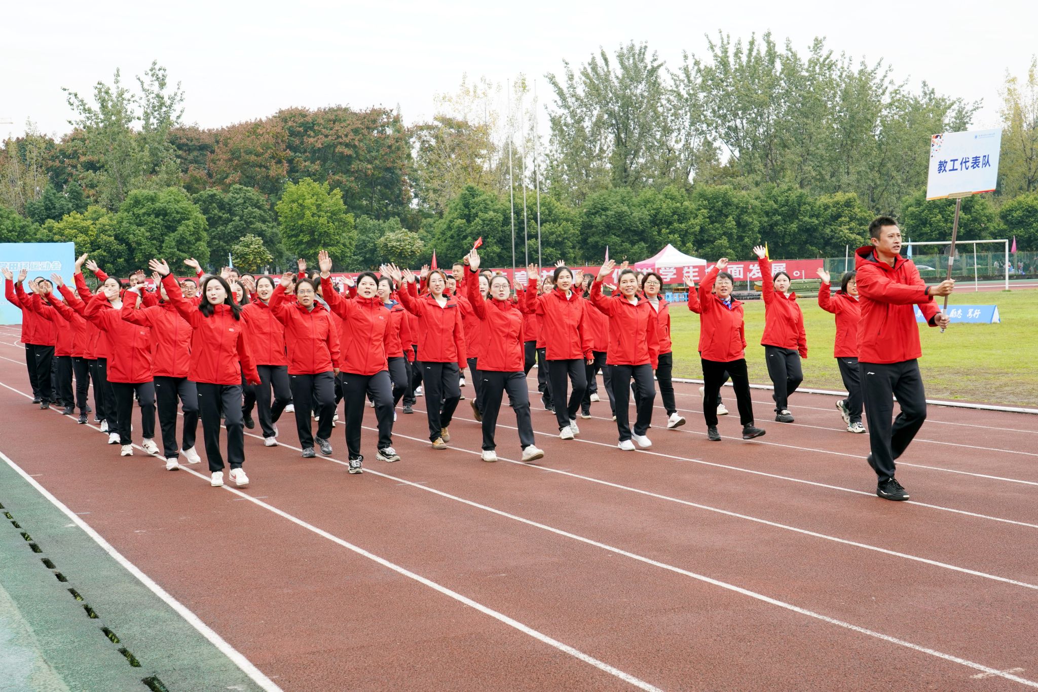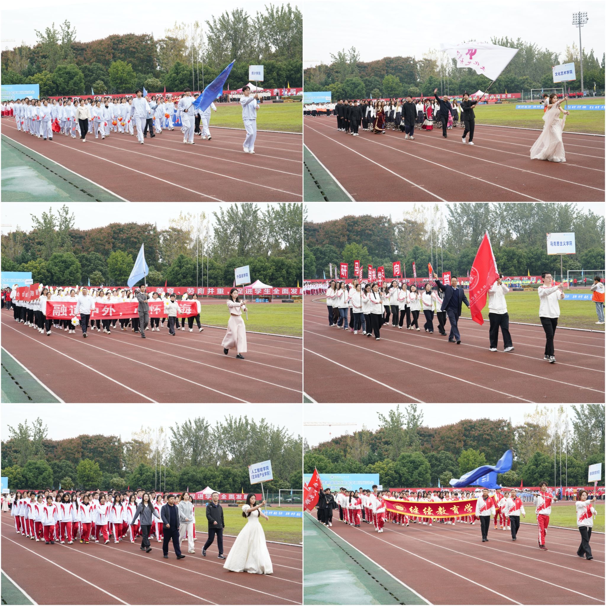 伴随着雄浑激昂的进行曲,18支来自各个学院的运动员和教职工代表队,意气风发、步调一致地走进运动场。