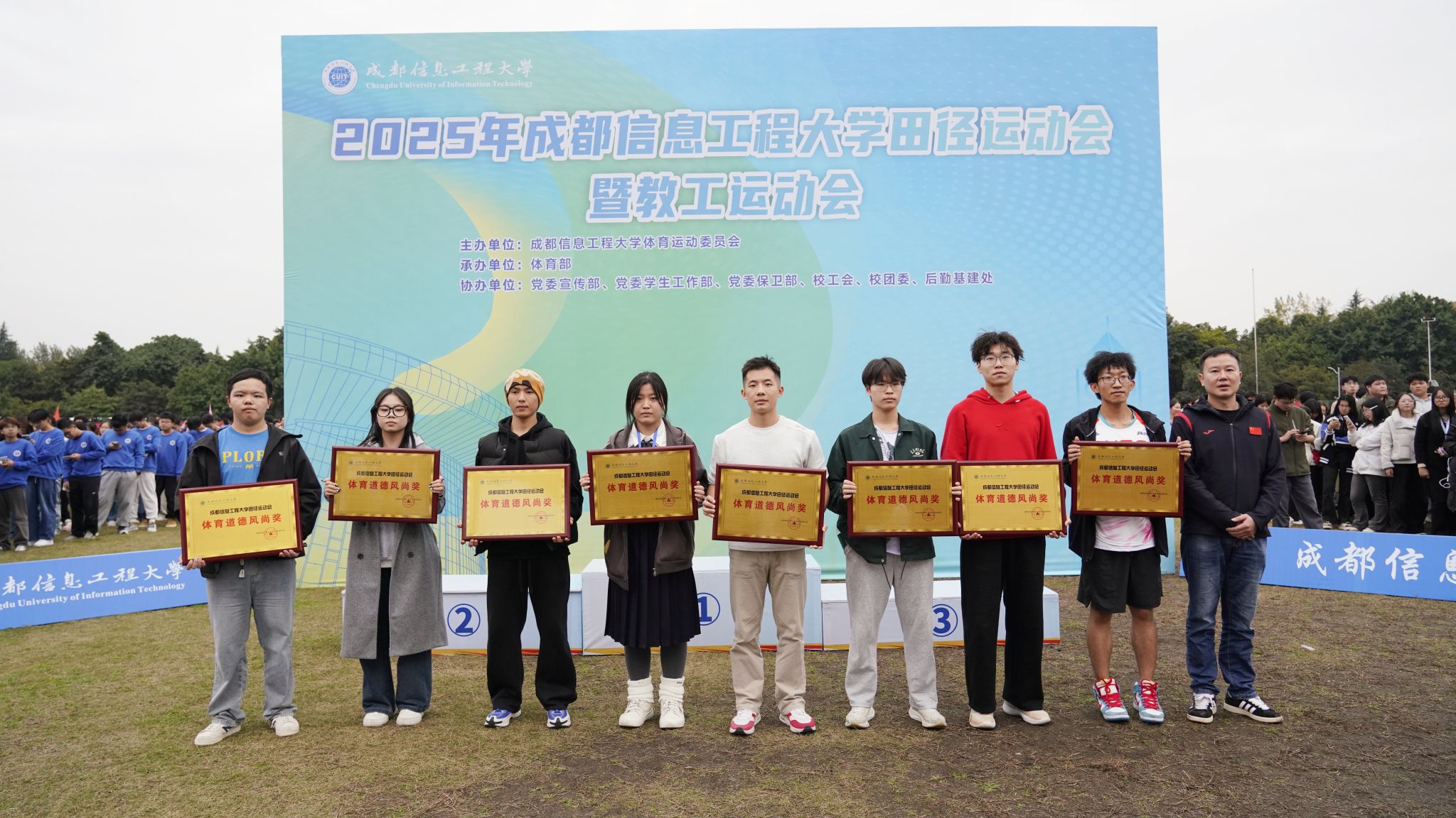 应用数学学院、大气科学学院、文化艺术学院、软件工程学院、光电工程学院、自动化学院、物流学院、管理学院荣获体育道德风尚奖。