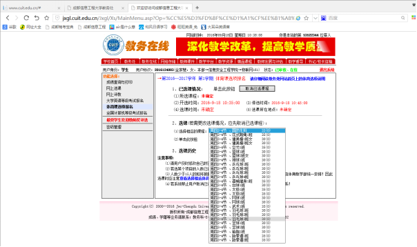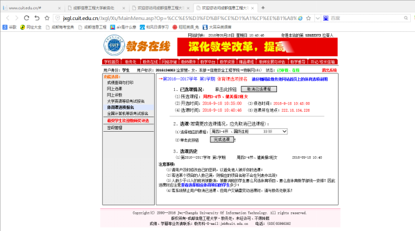 2016-2017学年2016级体育课网上选项注意事项(选课说明)