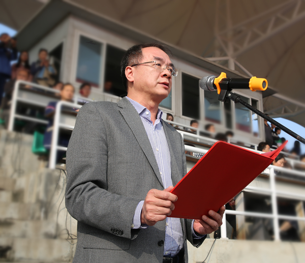 校长余敏明致开幕词。他向参加开幕式的全体师生表示亲切的问候,向筹办本次活动的所有工作人员表示衷心的感谢。他说,体育运动既是力量的角逐,也是智慧的较量;既是精神的展示,也是梦想的飞扬。健康的身心是大家快乐工作学习和乐观积极进取的重要基础,而校园体育运动就是提升健康素质和促进全面发展的重要手段。一年一度的学校运动会,正是对我校体育水平和质量的一次大检阅。他希望大家将这种拼搏、进取、协作的体育精神带到今后的学习、工作和生活中,以取得更大的成绩。